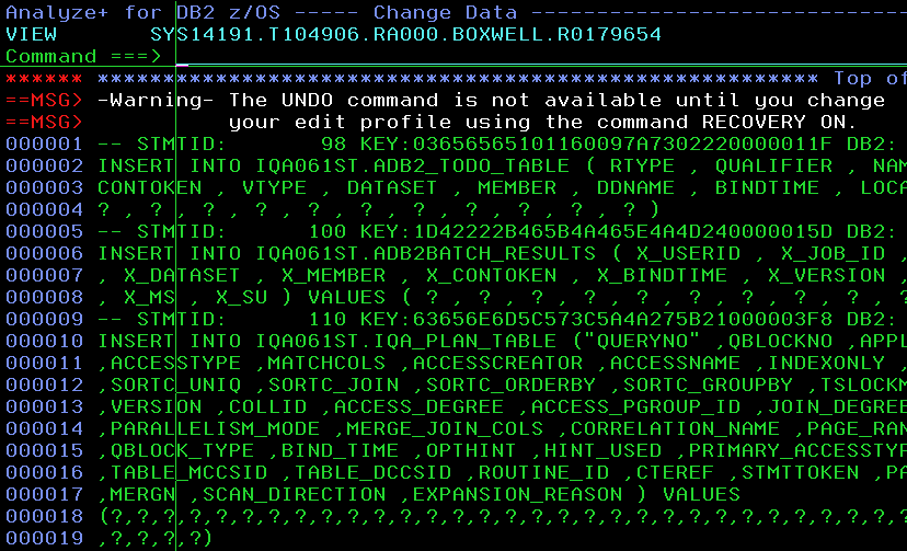 Now I can quickly see that there appears to be a long set of INSERTS – all with literals.