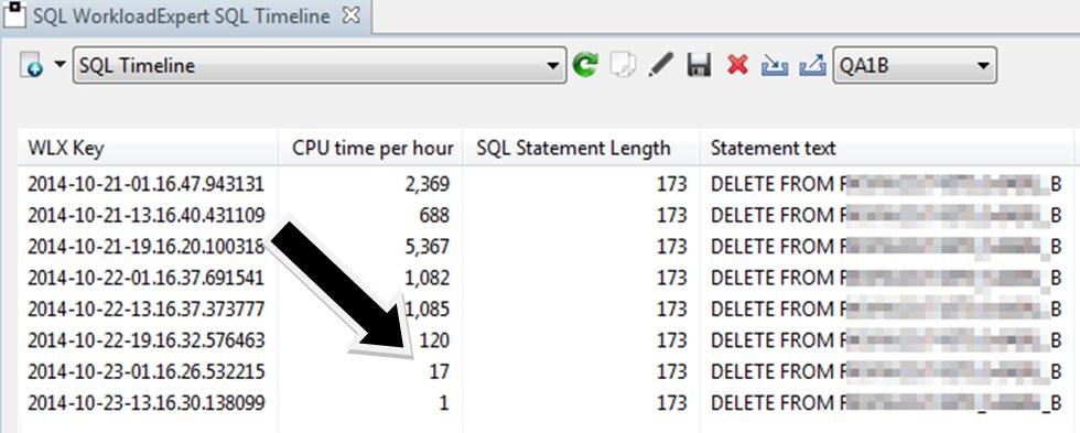 Here are a couple of beautiful little examples that I found by using WLX to show me the most CPU intensive SQLs running on a Plex over a couple of days.