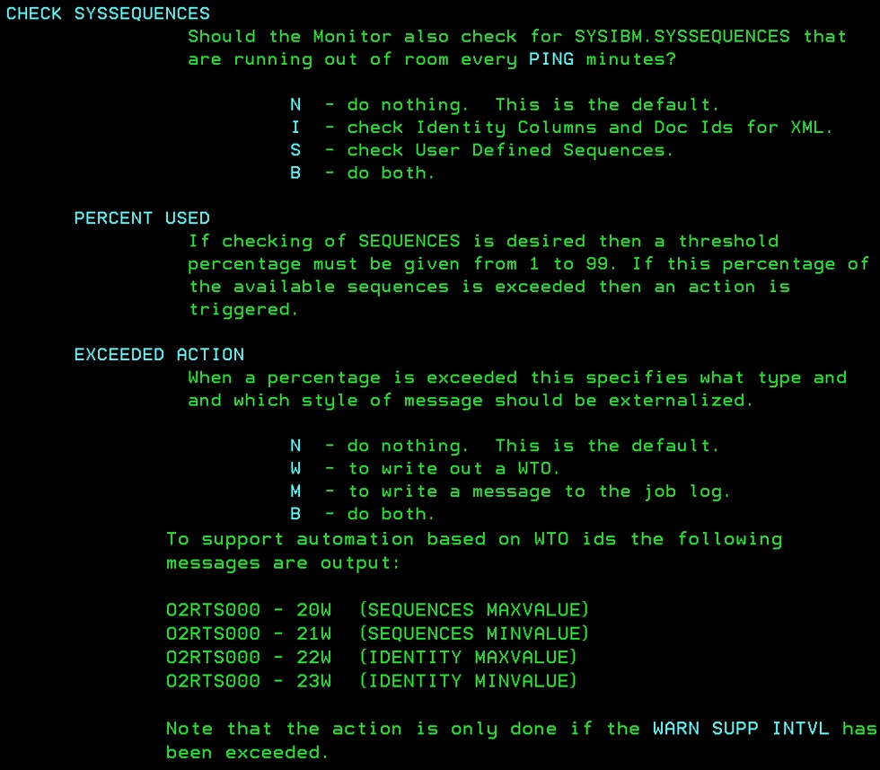 As mentioned in the screen shot above from our online help panel, it will check the SYSSEQUENCES every PING minutes which, by default, is 30. When the WARN SUPP INTVL is set, you can reduce the number of warnings issued so as not to overload your problem ticket System!